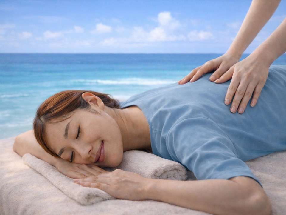 海を間近に感じる開放的な空間で、手のぬくもりを伝える「オールハンド」の施術を。包み込むような優しい手技が筋肉の緊張をゆっくりと解きほぐし、あなたを深いリラクゼーションの淵へと導きます。日常の喧騒から解き放たれ、心と身体が芯から癒されていく、ここだけの特別な時間をお過ごしください。